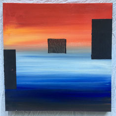 Black Boxes is een mixed art schilderij van acryl verf waarin verschillende materialen zijn verwerkt zoals karton en gaas. Het doek is afgewerkt met een transparante lak.