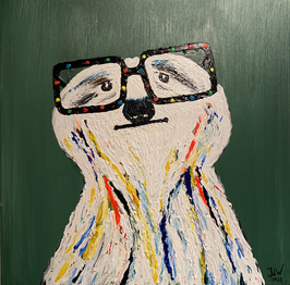 Luiaard is een schilderij met een Luiaard met een grote opvallende bril. Het schilderij is gemaakt met acrly verf en afgewerkt met een transparante lak.