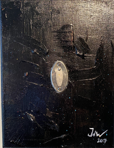 te plaatsen is de rode stip niet meer zichtbaar. Het schilderij is afgewerkt met een transparante lak.