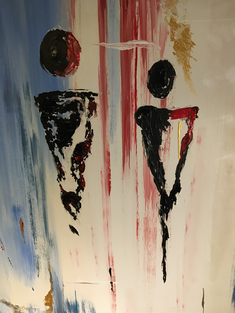 Twins is een mixed art schilderij waarin verschillende materialen zijn verwerkt zoals Karton, Linnen en Muurpasta . Het schilderij is afgewerkt met transparante lak.